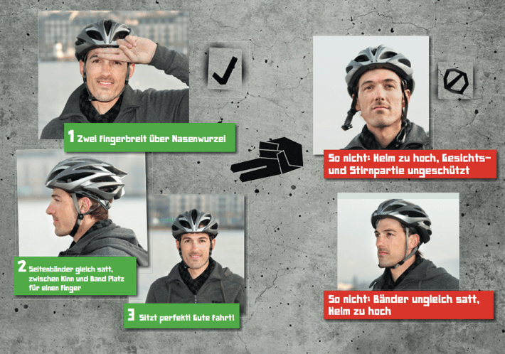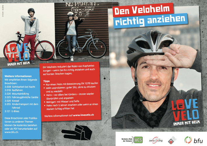 Tragen Sie einen gut sitzenden Velohelm mit der Bezeichnung EN 1078